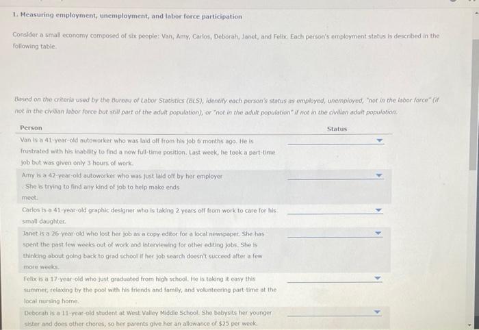 1 Measuring Employment Unemployment And Lator Chegg Com